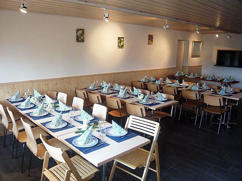Unser Treberwurst-Stübli ist 2009 neu erbaut worden. Es ist mit modernen Infrastrukturelementen ausgestattet und eignet sich sehr gut für Anlässe wie Geburtstagsfeiern, Hochzeitsfeste, Firmenfeste und andere Zusammenkünfte. Sie können aber auch Sitzungen, Seminare oder Tagungen bei uns durchführen. Tische, Stühle, Geschirr und Besteck sind für maximal 50 Personen vorhanden. Sie können das Treberwurst-Stübli zu interessanten Konditionen mieten. Hier ersehen Sie die Preise und die weiteren Mietbedingungen. Die Angaben für telefonische Auskünfte und Reservationen finden sie hier.